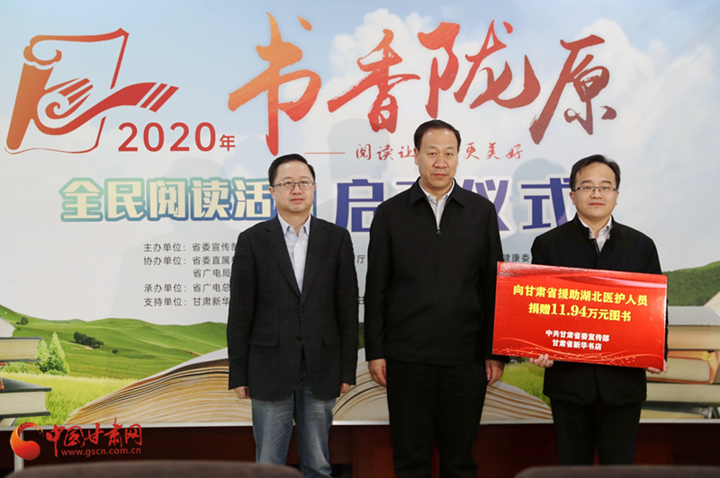 啟動(dòng)儀式上,省委宣傳部副部長(zhǎng)、省新聞出版(版權(quán))局局長(zhǎng)王成勇宣布2020年“書香隴原”全民閱讀活動(dòng)正式啟動(dòng)。省委宣傳部聯(lián)合讀者集團(tuán)新華書店飛天傳媒股份有限公司通過省衛(wèi)生健康委,向全省796名支援湖北醫(yī)護(hù)人員贈(zèng)送了價(jià)值11.94萬元的圖書。省內(nèi)10家出版社的相關(guān)負(fù)責(zé)人通過中國(guó)甘肅網(wǎng)現(xiàn)場(chǎng)直播為現(xiàn)場(chǎng)嘉賓、廣大網(wǎng)友推介優(yōu)秀甘版圖書。