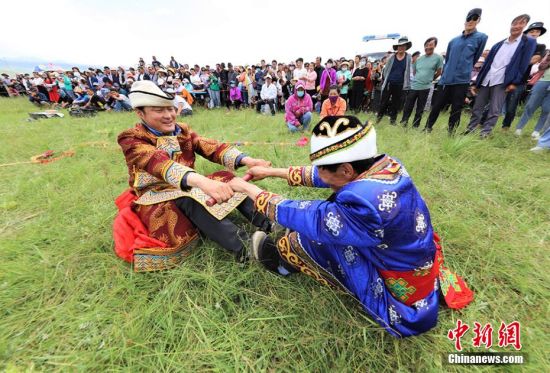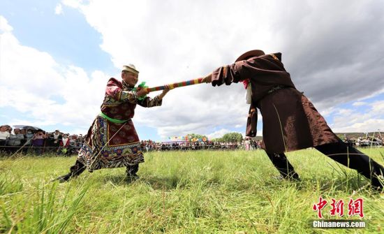 8月8日,甘肅張掖市肅南裕固族自治縣皇城鎮(zhèn)第十六屆民族文化旅游藝術(shù)節(jié)暨傳統(tǒng)體育運(yùn)動(dòng)會(huì)拉開帷幕。賽馬、押加、拔棍、頂杠子、射箭、背垛子等一項(xiàng)項(xiàng)少數(shù)民族傳統(tǒng)體育運(yùn)動(dòng)項(xiàng)目,吸引上萬(wàn)觀眾觀看。近年來,肅南縣將體育項(xiàng)目與歷史、民族、文化、旅游有機(jī)結(jié)合,打造民族體育節(jié)慶品牌和運(yùn)動(dòng)會(huì),使民族傳統(tǒng)體育發(fā)展增加了新的內(nèi)涵,逐步形成了全民健身品牌,影響力不斷擴(kuò)大。圖為參賽選手進(jìn)行拔棍項(xiàng)目比賽。 趙琳 攝
