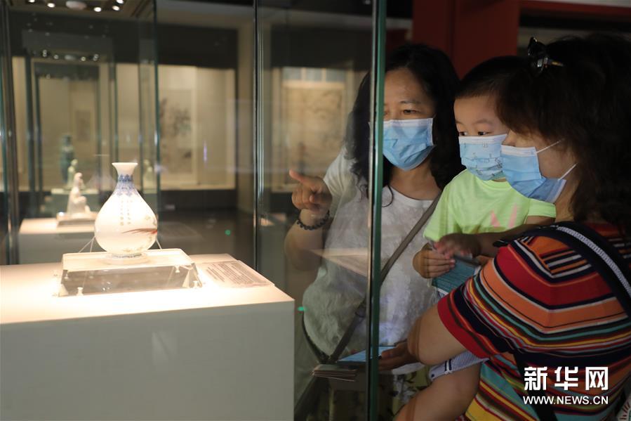 觀眾在天津博物館觀賞琺瑯彩玉壺春瓶(6月23日攝)。新華社記者 周潤健 攝