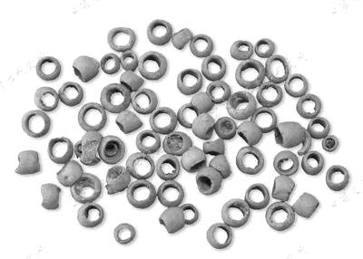在出土的文物中,有一件連珠紋釉陶杯。這是一件玻璃態(tài)水杯,出土?xí)r人們還發(fā)現(xiàn)了一些疑似杯子的殘片,在同一墓坑中還同時出土了大量料珠。這個玻璃態(tài)水杯紋飾獨特,通體藍(lán)色釉飾,底部手握處,竟然設(shè)計有7圈珠紋。顯然,這些凸出的珠紋,除了美觀外,還可以增加摩擦,避免杯子從手中滑落,當(dāng)然也不排除珠紋還有其他含義。