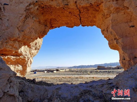 11月9日,甘肅省張掖市山丹縣老軍鄉(xiāng)硤口段古長城遺址在戈壁灘的藍(lán)天、雪山映襯下,盡顯蒼涼。山丹境內(nèi)的長城是由壕塹和山險為主的漢長城和黃土墻體為主的明長城兩部分組成,在山丹縣境內(nèi)綿延近200公里,被專家譽(yù)為“露天長城博物館”,是目前國內(nèi)保存最完整的一段古長城,也是中國境內(nèi)唯一“漢明長城并行存在”的古遺址。翟繼宗 攝
