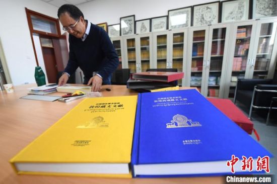 歷經(jīng)15年編纂,由法國國家圖書館與中國西北民族大學(xué)、上海古籍出版社合作編纂的《法國國家圖書館藏敦煌藏文文獻(xiàn)》,日前首次全部整理出版,才讓先后任副主編、主編?!钇G敏 攝