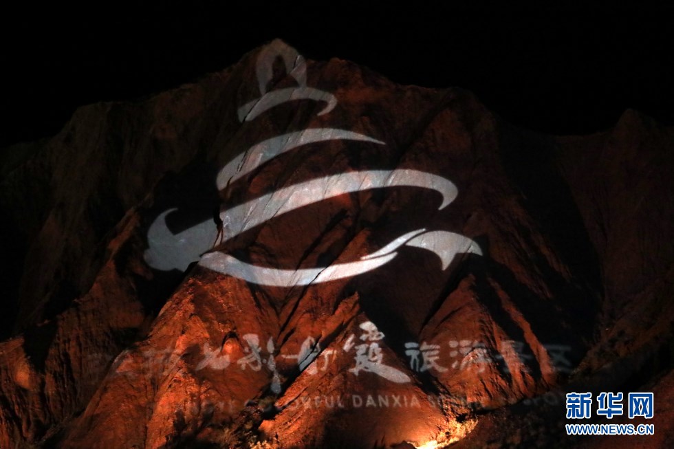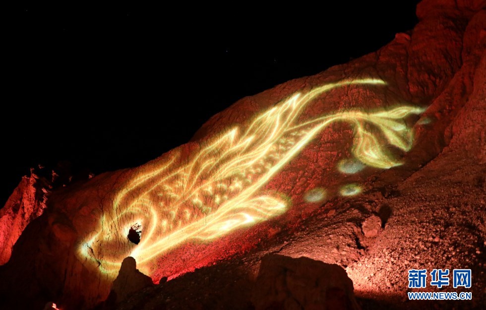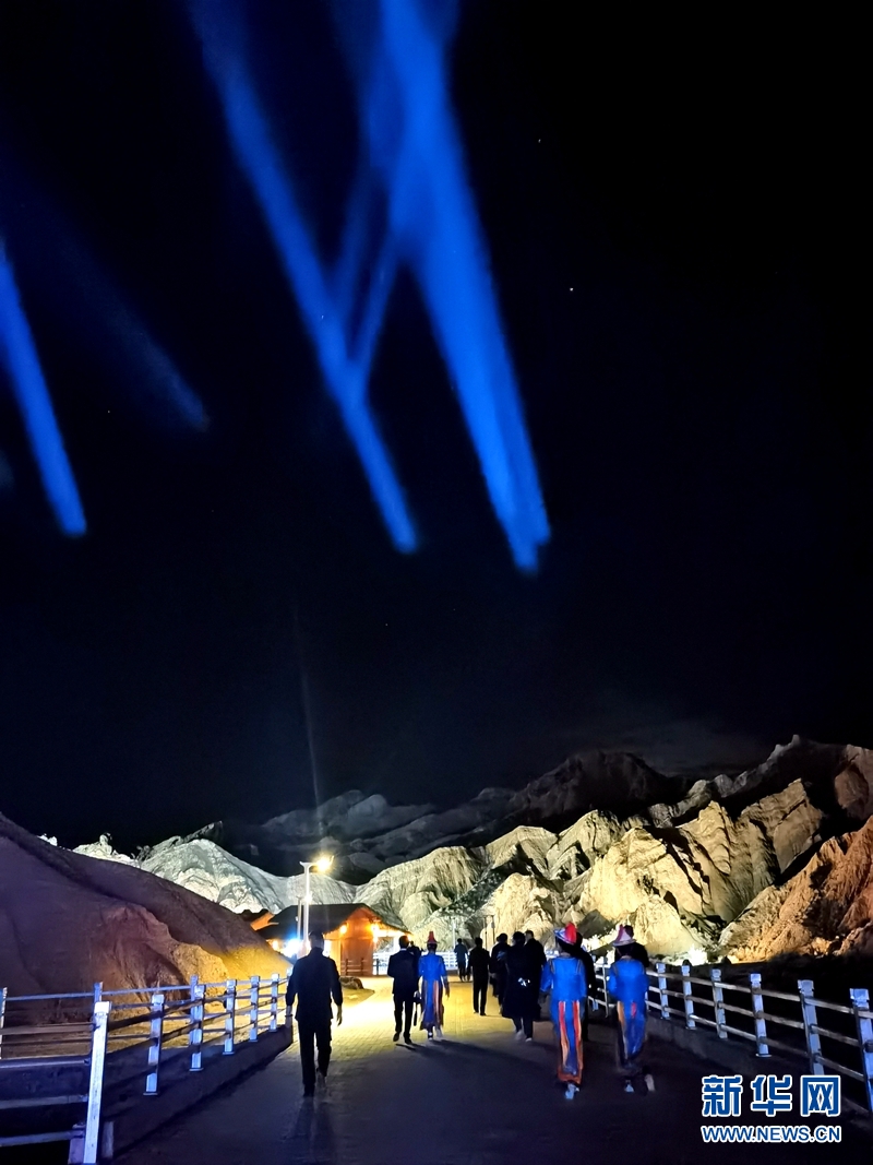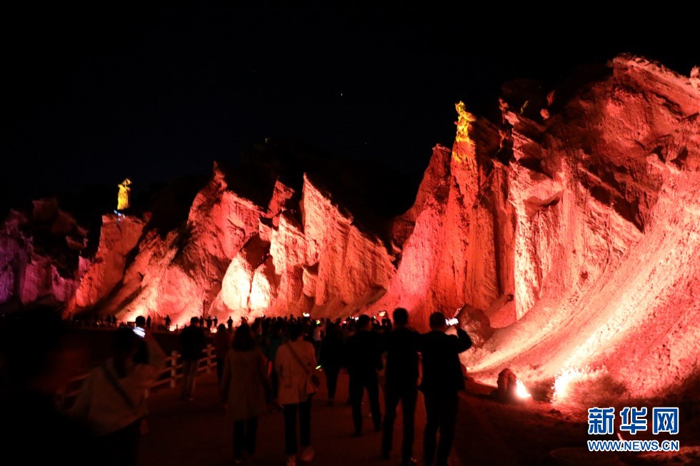 七彩丹霞與燈光秀融合,呈現(xiàn)了一場(chǎng)精彩紛呈的視覺盛宴。新華網(wǎng)發(fā)(王生元 攝)