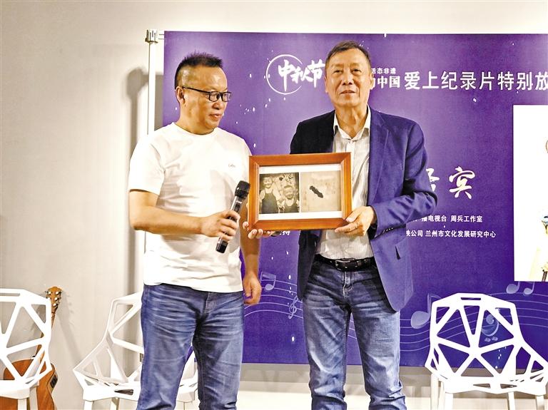 蘭州市電影發(fā)行放映公司副經(jīng)理燕兵將老照片送給王海成