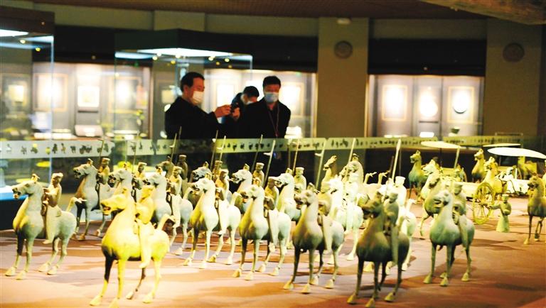 這是觀眾在甘肅省博物館銅奔馬等展區(qū)參觀。 奔流新聞·蘭州晨報記者 裴強 攝