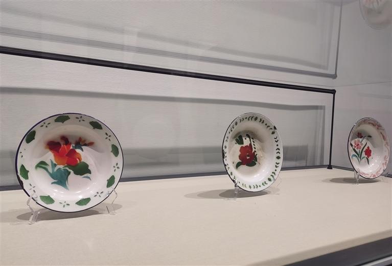 本次展出的156件展品均為蘭州搪瓷廠藝術(shù)底稿和實(shí)物,目前由甘肅三木自行車(chē)博物館收藏,其中搪瓷手繪設(shè)計(jì)圖稿65幅,搪瓷器皿91件。展出手繪設(shè)計(jì)圖稿均為蘭州搪瓷廠王村等人設(shè)計(jì)繪圖,分為湯盆、面盆、菜盤(pán)、茶盤(pán)4大類(lèi):圖案內(nèi)容有花鳥(niǎo)、人物、動(dòng)物、客輪、軍艦,包括經(jīng)典圖案“紅雙喜”“幸福”“美好”等,大小尺寸由26至38厘米之間。器皿類(lèi)搪瓷有盆類(lèi)、盤(pán)類(lèi)、缸類(lèi)、碗類(lèi)。展覽充分體現(xiàn)了蘭州搪瓷廠設(shè)計(jì)室及工人們?cè)诶^承傳統(tǒng)陶瓷工藝的基礎(chǔ)上有了創(chuàng)新和鮮明的時(shí)代特色。