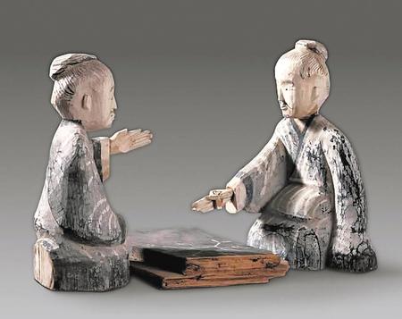 武威市磨嘴子出土的西漢彩繪 對弈六博俑