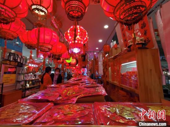 臨近虎年春節(jié),蘭州居民在市集購置年貨?!⌒煅z