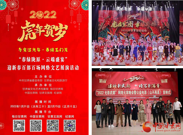 中國(guó)甘肅網(wǎng)2月22日訊 (本網(wǎng)記者 張?zhí)m琴)剛剛過(guò)去的虎年春節(jié),甘肅省文旅廳積極組織策劃開(kāi)展了“春綠隴原·云端盛宴”百部百場(chǎng)線(xiàn)上文藝展播,據(jù)統(tǒng)計(jì)網(wǎng)絡(luò)觀(guān)看總播放量達(dá)6788萬(wàn)人次,網(wǎng)友反響熱烈。