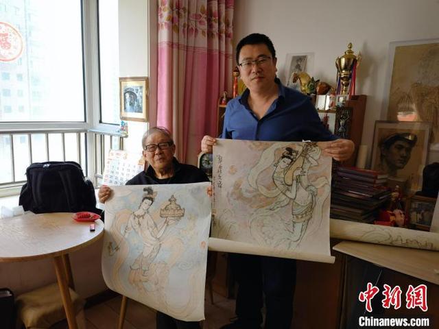 3月上旬,《絲路花雨·誕生》作者陳曉斌(右)拜訪今年86歲的舞美設計師李明強(右)老先生?!⊥跸让稀z