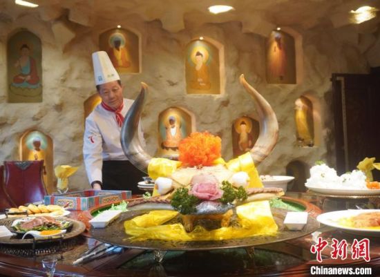 中新網(wǎng)蘭州3月29日電(張婧)“來自壁畫中的敦煌菜,背后都藏著真實(shí)存在的人或事、景或點(diǎn)。”國(guó)家特一級(jí)烹調(diào)師趙長(zhǎng)安長(zhǎng)期從事于敦煌菜的歸納與發(fā)展。他說,無論菜名還是菜式的賣相,都融入敦煌故事或圣境圣水,可謂“一菜一典故,一席十圣境”,讓人仿佛置身于古絲綢之路上。