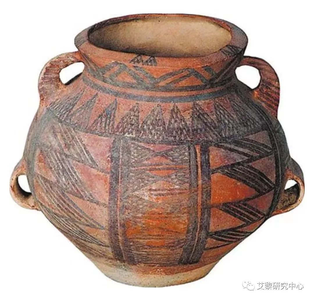 深入考察“四壩文化”遺址的布局,會發(fā)現(xiàn)一個很有趣的現(xiàn)象:幾乎所有的遺址都與水源毗鄰。山丹四壩灘位于古弱水南岸和川口河?xùn)|岸之間開闊平臺之上,三面環(huán)水;山丹山羊堡灘和壕北灘遺址都在古山丹河南岸,臨水而居;民樂東灰山位于古弱水支流童子壩河的古河道之上,地形平坦,水源充足;酒泉干骨崖、玉門火燒溝都位于在古疏勒河邊的臺地上……而“四壩文化”遺址出土的陶器多有類似耕地的平行波折紋、水域波浪紋、月牙形的魚頭紋和網(wǎng)狀紋,這些圖形紋飾,自然來源于先民們的生活場景,也是他們耕種土地和打魚狩獵的實(shí)物見證。