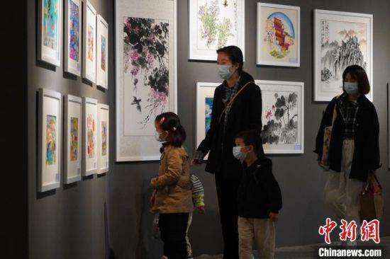 市民參觀少兒美術(shù)展覽。