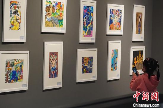 5月15日,甘肅蘭州,市民參觀少兒美術(shù)展覽。當(dāng)日,不少市民和游客來到甘肅省博物館參觀,樂享周末時光。九美旦增 攝