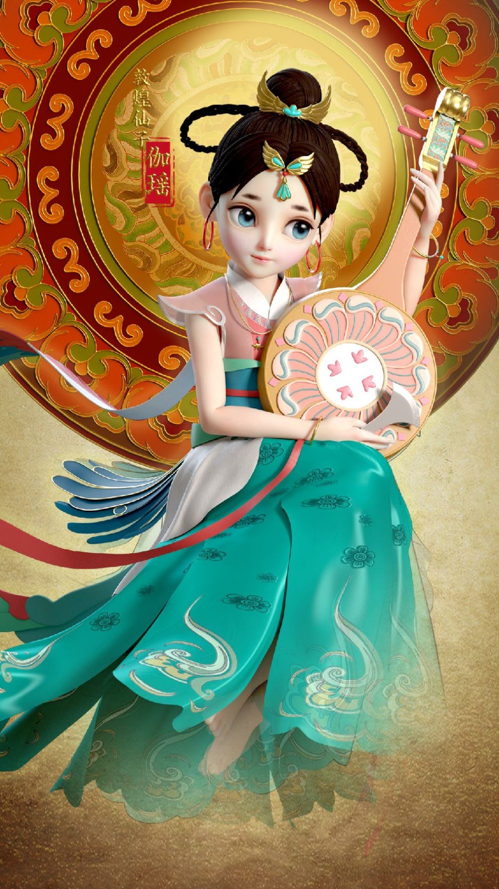 少女名叫“伽瑤”,取材于敦煌壁畫,原型是聲音婉轉(zhuǎn)如歌的神鳥“迦陵頻伽”。“伽瑤”是敦煌研究院精心打造的虛擬人,希望用人格化的內(nèi)容傳播敦煌文化。