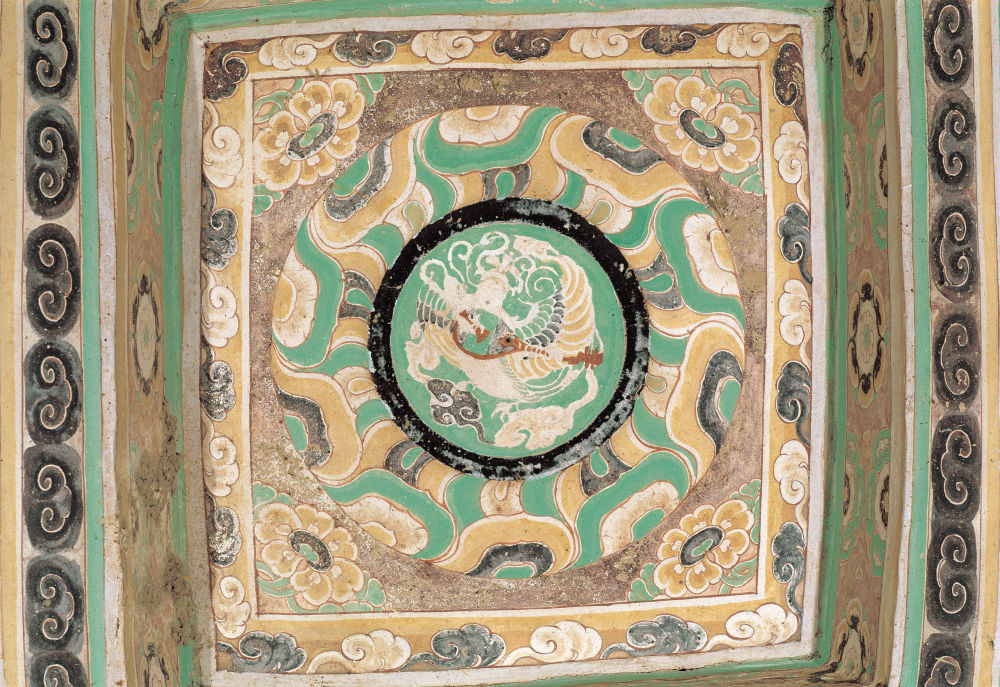 圖為莫高窟第360窟藻井中的“迦陵頻伽”。 敦煌研究院供圖