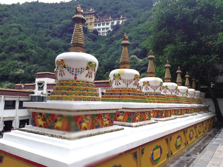 蘭州石佛溝靈巖禪寺坐落在石佛溝腹地,位于蘭州市區(qū)南16公里處的石佛溝國家森林公園內,是藏傳佛教格魯派(黃教)寺院。石佛溝寺廟發(fā)現(xiàn)于清初,山崖上發(fā)現(xiàn)了—個石洞,洞壁上有石佛像。嘉慶(公元1796年—1820年)時,有僧人化緣募捐,修建石佛寺,并長年住持,石佛溝也因此而得名。北魏太武帝拓跋燾神麚四年(公元431年),鮮卑族首領、吐谷渾白蘭王慕容貴以己隱修之石佛溝靈巖洞為基,拓展建成寺院,因洞內有石刻佛像,遂取名“石佛寺”。該寺在清后兩度被毀,2008年重建。寺內建有八座白塔,壯觀雄渾。