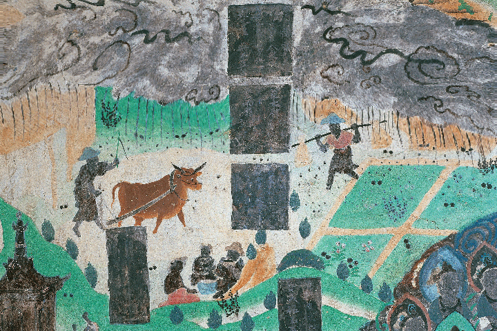 描繪出唐代農(nóng)夫揮鞭、黃牛犁地的農(nóng)耕生活