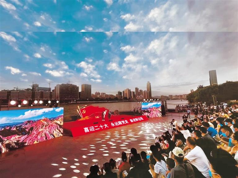 中國甘肅網(wǎng)6月27日訊 據(jù)蘭州晨報報道(奔流新聞·蘭州晨報記者荊雯)夜幕降臨,百年鐵橋霓虹閃爍,滔滔黃河流光溢彩,華麗的“如意甘肅號”“佛慈號”畫舫游船拖著長長的汽笛悠然航行,沿岸各具特色的精致舞臺上,淳厚的民謠和著奔涌的浪花,吸引著過往市民和游客……為全面落實甘肅省第十四次黨代會精神,積極落實“強省會”行動和“黃河福道”建設(shè),進一步唱響“黃河之濱也很美”的城市名片,6月24日晚,由蘭州市文旅局、蘭州黃河風(fēng)情線大景區(qū)管委會、蘭州黃河生態(tài)旅游開發(fā)集團主辦,蘭州文化旅游產(chǎn)業(yè)發(fā)展集團承辦的文化惠民演出項目——“樂動金城 聲醉蘭州”第四季黃河之濱百日千場音樂展演,在黃河之畔的親水平臺主舞臺熱力啟幕。