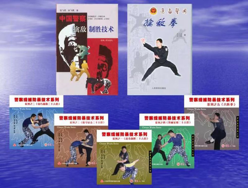 張飛虎在習(xí)武之余,學(xué)術(shù)上也一路精進(jìn),展現(xiàn)了他學(xué)文的天賦,他不但是警院教授,還曾是警院學(xué)報副主編,除了先后出版的4部學(xué)術(shù)專著外,還錄制了“警察緝捕防暴技術(shù)”系列教學(xué)光碟,在國內(nèi)外發(fā)行,并有一項科研成果申報為國家專利。一位武術(shù)名家,在學(xué)術(shù)上有如此驕人的成就,實屬不易。治學(xué)之余,張飛虎還分別在《甘肅公安》和《蘭州公安》雜志上創(chuàng)辦并主持《招招制敵》與《實戰(zhàn)練兵》欄目,解說并實戰(zhàn)演練制敵招法。專著《中國警察擒敵制勝技術(shù)》一書2010年被公安部評為“全國公安機關(guān)優(yōu)秀培訓(xùn)教材”,書中首次提出了“軍隊擒敵技術(shù)和警察擒敵技術(shù)相殊差別”的觀點,并對擒敵技術(shù)的每一招法進(jìn)行了生理學(xué)、生物力學(xué)的分析,從而科學(xué)地將擒敵術(shù)上升到一個新的理論與實戰(zhàn)融通的高度。更為可貴的是,《中國警察制勝技術(shù)》將法律精神融入其中,使招法的運用有了法律依據(jù),盡顯法制社會的時代精神,也與文明社會的要求不謀而合,將警察擒敵技術(shù)與實用法律無縫銜接。針對警察沿襲軍隊擒敵拳無主體身份特點之不足,創(chuàng)編了首套以警察擒敵技術(shù)為主體內(nèi)容的擒敵拳——《通備警用擒敵拳》,填補了公安機關(guān)無警用擒敵拳的空白。2021年,作為建黨100周年的獻(xiàn)禮,張飛虎與其摯友張勇先生聯(lián)袂出版《維穩(wěn)中國》,為國家反恐維穩(wěn)工作貢獻(xiàn)了綿薄之力。