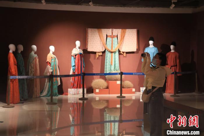 圖為游客在敦煌莫高窟參觀“云衣霓裳:敦煌唐代服飾文化暨創(chuàng)新設計展”。(資料圖) 張曉亮 攝