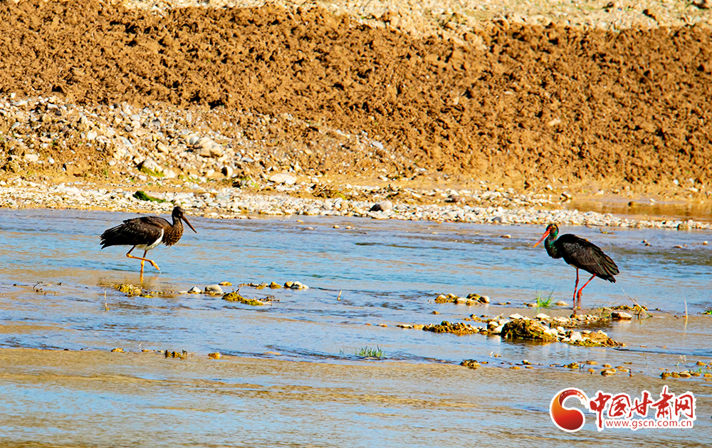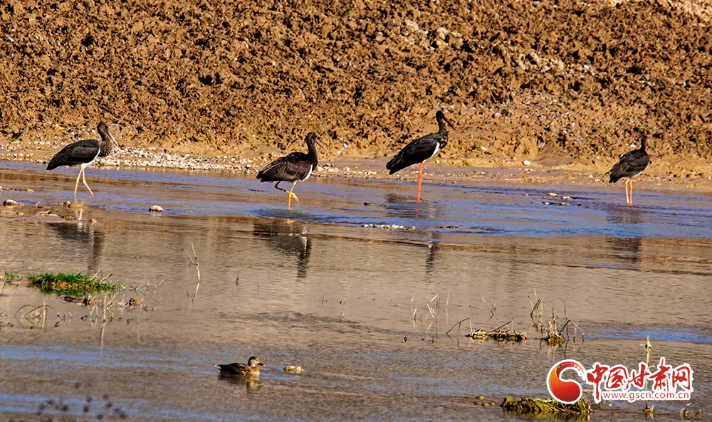 近日,大批被比喻為鳥中“大熊貓”的黑鸛在平涼市崇信縣汭河棲息,它們身軀挺拔,纖頸長腿,姿態(tài)優(yōu)美,或悠閑覓食,或展翅翱翔。