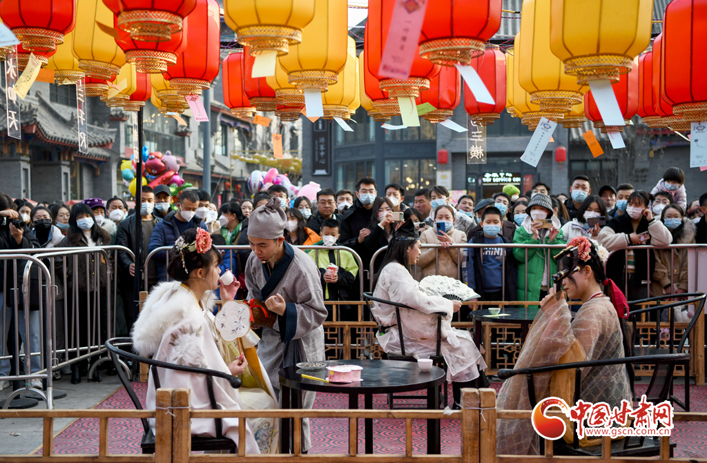 2月5日,甘肅省蘭州市七里河區(qū)蘭州老街,游人如織,格外熱鬧,人們賞舞獅、看表演 、猜燈謎、品美食,處處洋溢著熱騰騰的“煙火氣”。春節(jié)期間,蘭州老街開啟多場景布局、多業(yè)態(tài)融合、沉浸式消費等新春購物盛宴,吸引大量市民游客前來消費游玩,消費旺文旅熱,老街成為城市商業(yè)、文化和旅游的地標。
