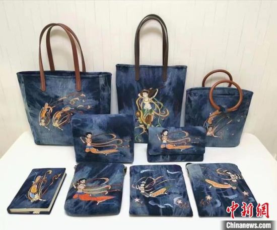 “我創(chuàng)作了《壁畫》系列作品,包含9幅飛天,結(jié)合扎染、手繪、刺繡工藝,大家反饋很好。”許靜說(shuō),該作品中采用牛仔布料,體現(xiàn)飛天的厚重感和年代感。