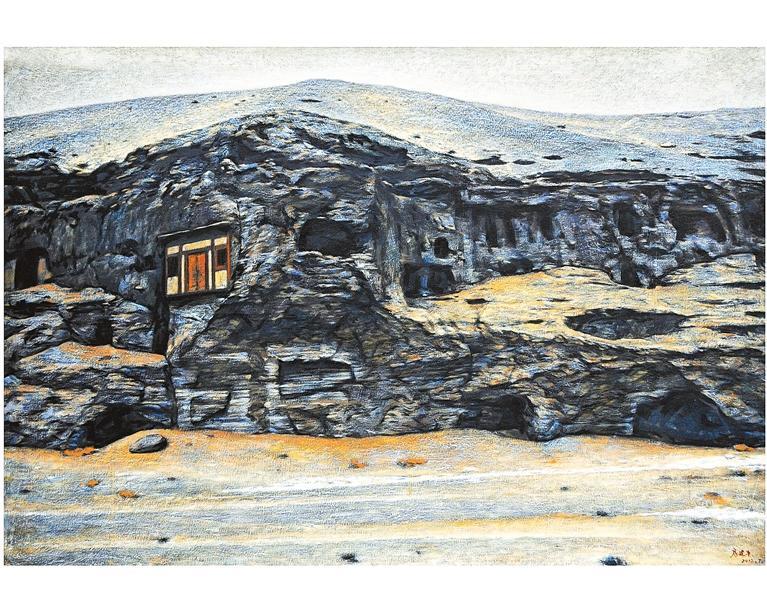 房建平多年來(lái)扎根甘肅、扎根西北,深受敦煌藝術(shù)的影響,并由此產(chǎn)生了自己獨(dú)到的見(jiàn)解。他以當(dāng)下的視角去審視千年之前的敦煌壁畫,思考古代工匠創(chuàng)作的技法運(yùn)用以及時(shí)代所賦予工匠們的精神面貌。他在深入研究敦煌壁畫的過(guò)程中,被那豐富的色彩所吸引,被那厚重斑駁的肌理所嘆服,被那點(diǎn)線面的旋律所震撼。他孜孜不倦、廢寢忘食地學(xué)習(xí),吸收借鑒敦煌壁畫的元素,然而并非簡(jiǎn)單地臨摹、復(fù)制與再現(xiàn),而是于審視、思索之后源源不斷地發(fā)現(xiàn)、感受、弘揚(yáng)。更為可貴的是,他竭力探尋敦煌莫高窟的精神內(nèi)涵,包括開(kāi)放包容多元文化一體的精神、莫高窟守護(hù)人的工匠精神的共同凝聚。