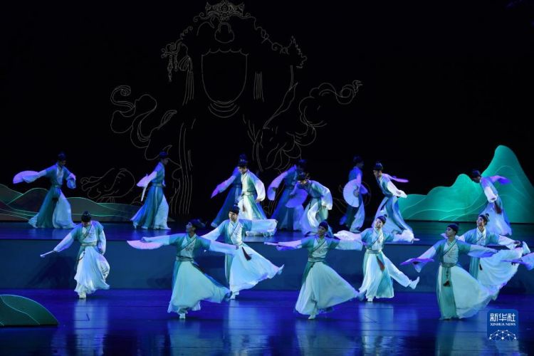 中國殘疾人藝術(shù)團演員在敦煌大劇院表演大型情景音畫劇《千手千眼》(6月18日攝)。