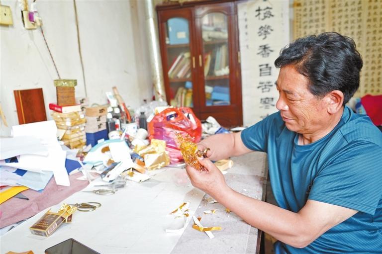 原標(biāo)題:巧用廢棄錫箔紙 平?jīng)雒耖g藝人剪出“千梅圖”