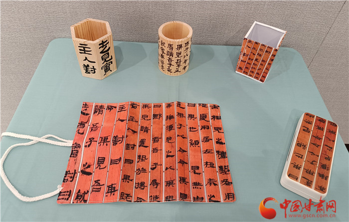 而在西北師范大學(xué)美術(shù)學(xué)院,簡牘則以文創(chuàng)的形式呈現(xiàn)美感,豐富著人們的生活。近日,由西北師范大學(xué)聯(lián)合甘肅簡牘博物館舉辦的“簡述中國 牘懂絲路”展覽正在展出,包含簡牘書法、文創(chuàng)成果兩部分。