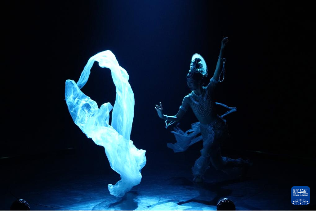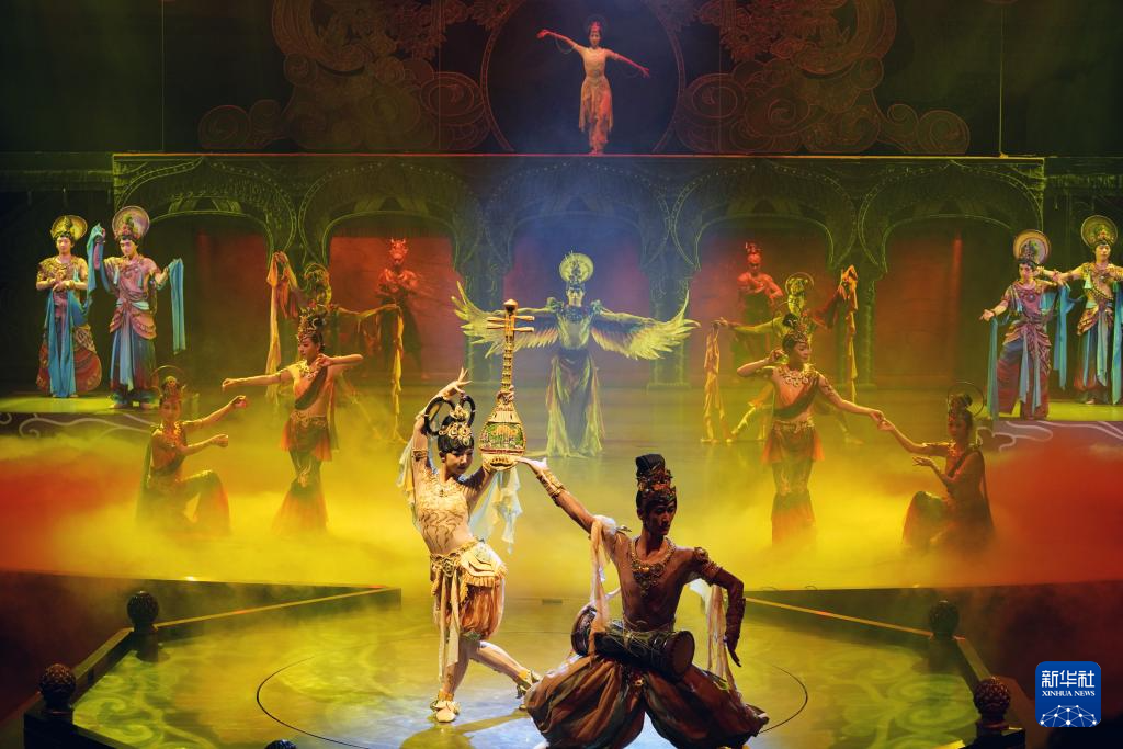 8月9日,演員在《樂動(dòng)敦煌》中表演。新華社記者 馬寧 攝