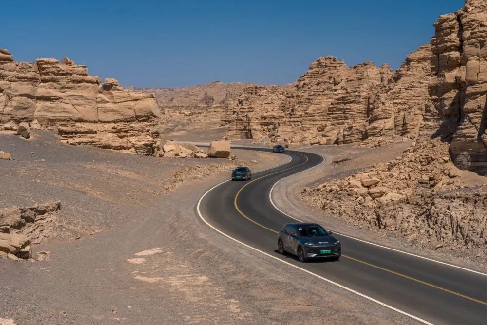 新華社“一帶一路全球行”報(bào)道團(tuán)駕駛長(zhǎng)安汽車穿越新疆哈密大海道。新華社發(fā)(卓鵬 攝)