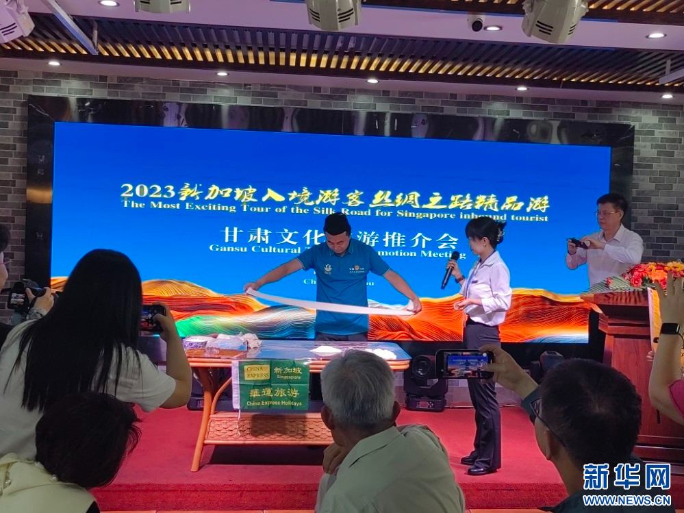 推介會上,甘肅文化和旅游推介大使向新加坡游客詳細介紹了甘肅多元且極富特色的文化旅游資源;蘭州拉面師傅為大家現(xiàn)場表演了非遺美食牛肉面的拉面絕技;新加坡南方藝術研究會合唱團還進行了合唱表演。