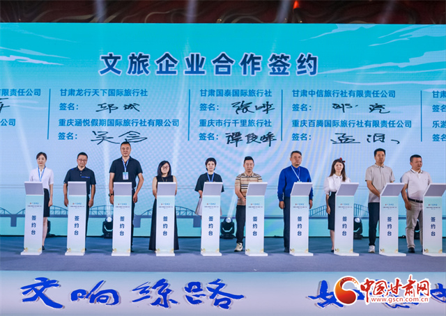 推介會上,蘭州、隴南兩地文旅部門分別作了當(dāng)?shù)匚穆觅Y源主題推介。甘肅蘭鐵國際旅行社與重慶和平國際旅行社;甘肅蘭神國際旅行社與重慶西美國際旅行社;嘉峪關(guān)君和國際旅行社與重慶渝之旅國際旅行社等兩地的20家文旅企業(yè)(旅行社)代表分別簽訂了《甘渝客源互送合作協(xié)議》。