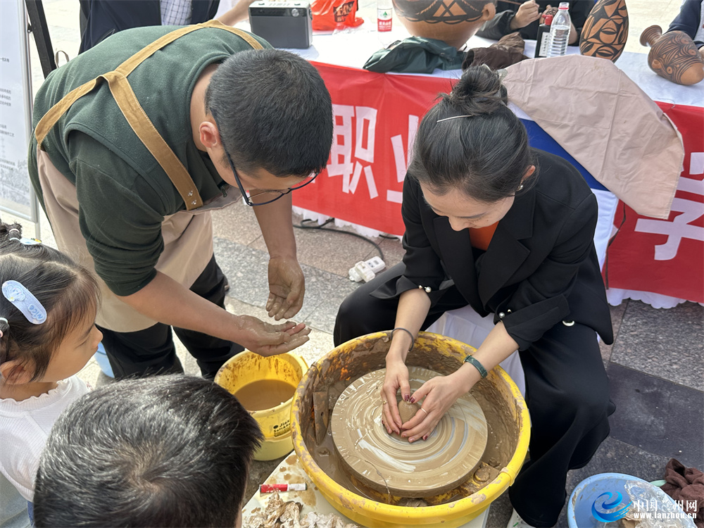 當(dāng)日的活動(dòng)中,蘭州職業(yè)技術(shù)學(xué)院非物質(zhì)文化遺產(chǎn)學(xué)院的師生現(xiàn)場展示蘭州刻葫蘆、慶陽剪紙、木版年畫、甘南藏族唐卡、泥板畫、甘肅彩陶、掐絲琺瑯畫等非遺技藝,吸引了很多市民見此情景駐足觀看。其中甘肅彩陶展示尤為引人注目,不少市民上手體驗(yàn),在學(xué)院同學(xué)的幫助下體驗(yàn)非遺文化。市民張女士說:“這是我第一次體驗(yàn)制作甘肅彩陶,讓人印象非常深刻,了解了古人是如何制作彩陶的,也讓我'沉浸式'感受到非遺文化的魅力。”