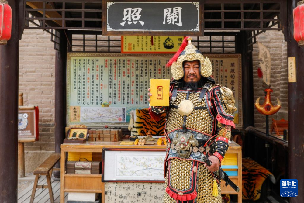 光頭絡腮胡的李森身披甲胄,在景區(qū)內(nèi)扮演明朝嘉峪關最高軍事長官,為游客簽發(fā)文創(chuàng)產(chǎn)品“關照”(通關文牒)。自2001年起,他在嘉峪關“守關”20多年,親眼見證了嘉峪關旅游業(yè)的發(fā)展變化。