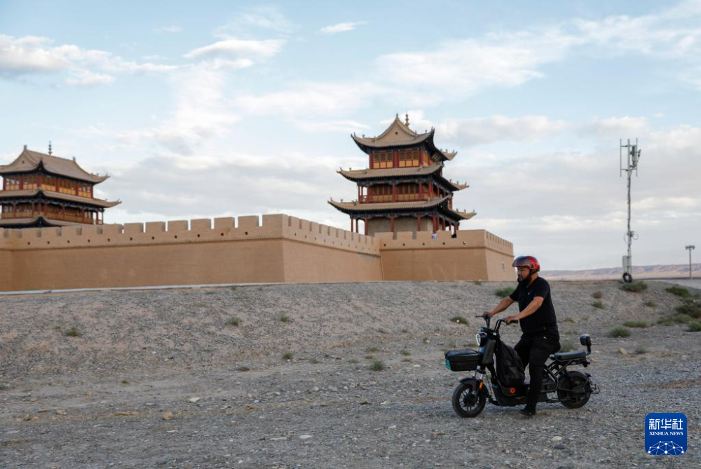 7月13日,李森結束一天的工作離開甘肅嘉峪關關城景區(qū)騎電動車回家。新華社記者 方欣 攝