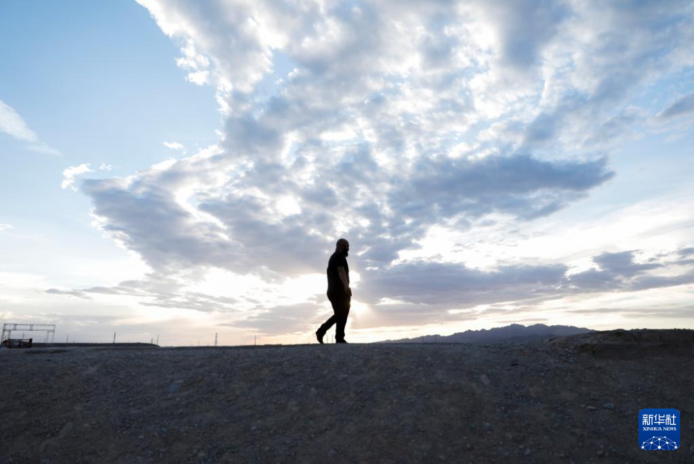 7月13日,李森結束一天的工作離開甘肅嘉峪關關城景區(qū)。新華社記者 方欣 攝
