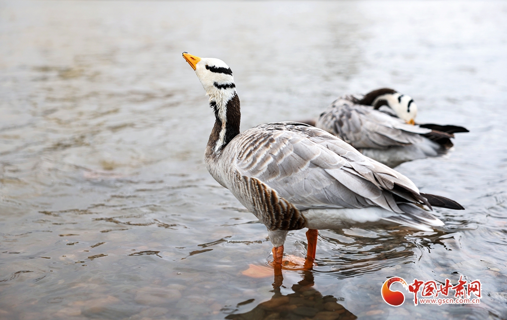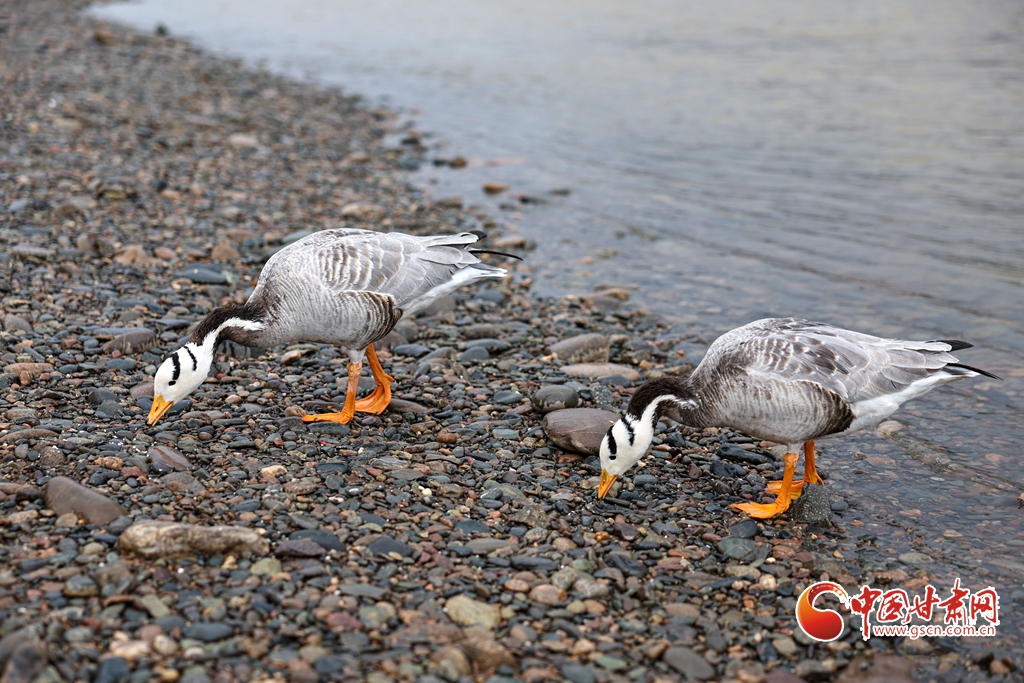 當(dāng)日,在蘭州市城關(guān)區(qū)黃河河畔,一對(duì)斑頭雁與市民溫馨相遇,吸引不少市民駐足投喂,拍照“打卡”。