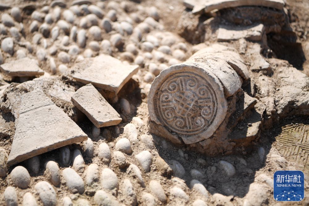 這是甘肅省隴南市禮縣四角坪遺址出土的云紋瓦當(dāng)(2022年6月10日攝)。
