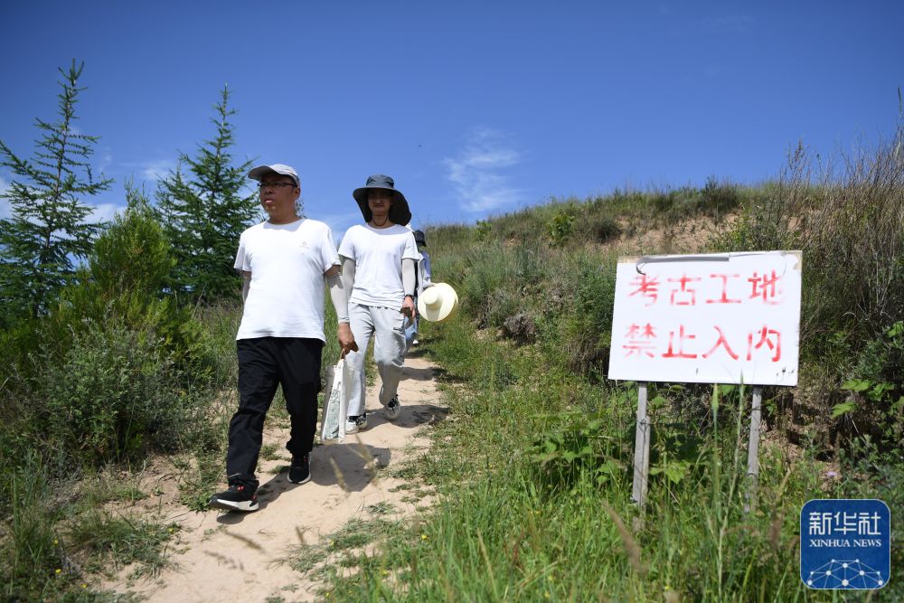 工作人員在甘肅省隴南市禮縣四角坪遺址考古發(fā)掘現(xiàn)場工作(2022年6月10日攝)。