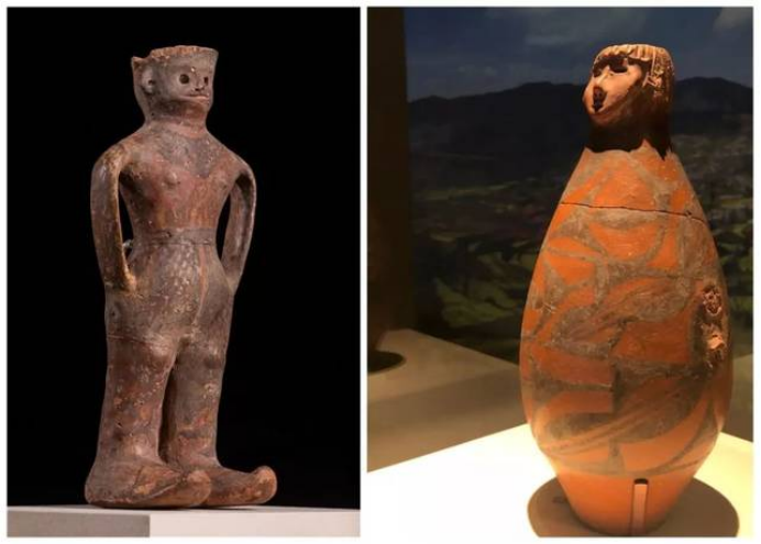 隴東有少女,而位于河西的玉門火燒溝同樣出土了一件距今3700多年的人形彩陶罐,被人們稱做“河西少年”。在2019年“少女”與“少年”這一對“金童玉女”就已經(jīng)邂逅了,2019年中國國家博物館展出“絲路孔道——甘肅文物精華展”時,在展覽序廳門口了生了這樣一場友愛的“接力”。隴東大地灣的可愛“少女”——人頭形器口彩陶瓶說:“出來有一陣子了,在京城過了端午節(jié),該回家了!在京的時間雖短,但我很高興作為代表在國家博物館迎接全國、全世界的觀眾,希望還有機(jī)會可以再來!”。河西火燒溝的酷“少年”——人形彩陶罐說:“您回家了,我接替您的工作,在展覽的大門口,繼續(xù)帶領(lǐng)觀眾領(lǐng)略多彩厚重的甘肅歷史文明!”