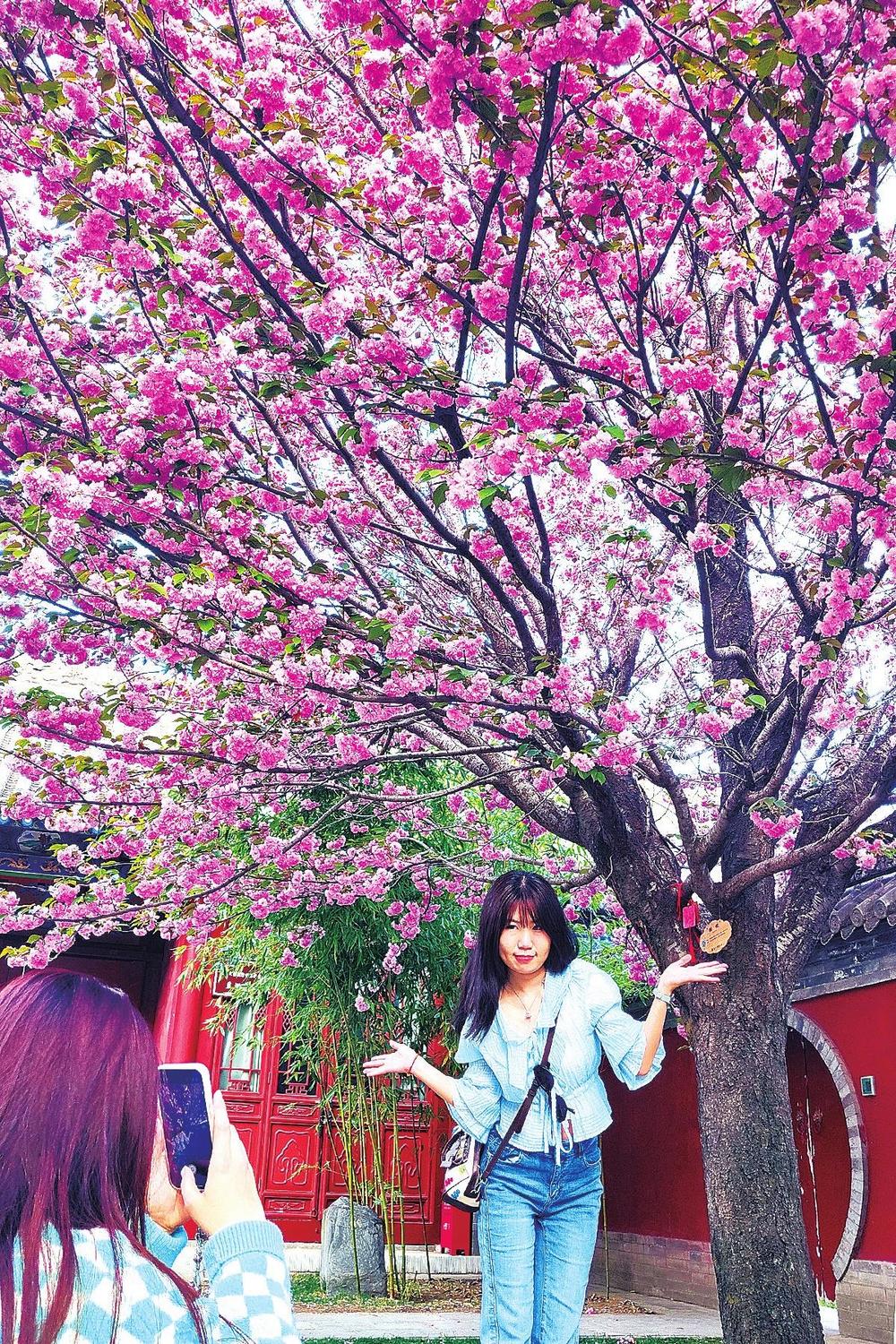 ▲天水伏羲廟盛開的櫻花醉游人。