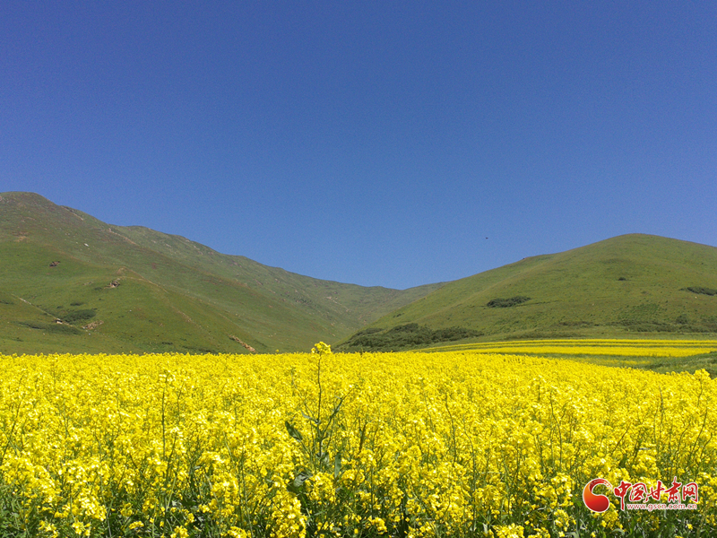 大山深處,秋風(fēng)嬉戲,藍(lán)天澄碧,大地金黃,白云悠然。蜂鳴,蝶舞,花香混合著泥土的芬芳,天地猶如一幅散著金光的風(fēng)景畫,渾然一體,如夢似幻。赤腳踩在綠油油的嫩草上,癢癢的,柔柔的,酥酥的。如母親的懷抱,舒適而安寧?;ê8呛⒆觽兊奶焯茫诶锩娲驖L,摔跤,捉迷藏……揮灑無邪的童真。這時,或在花間嬉戲,或在花徑漫步,或在山野奔跑,或干脆在觸手可及的藍(lán)天白云下,枕著花香,靜靜一眠,把自己放逐在原野上,身心兩忘,回歸一個沒有謊言的世界。安靜,正如無邊無際的虛空;澄澈,又像一望無垠的凈土。清新的空氣,寂靜的原野,一切都是那么凈,靜。一切都融入自然,回歸純真。圣潔,澄凈,忘世,忘機(jī),忘我,又那么浪漫。油菜開始開花。一開始是綠葉叢中一點(diǎn)黃,就好像是綠色的海洋里揚(yáng)著黃色的一桅風(fēng)帆。接著是倆桅三桅……有一天你會發(fā)現(xiàn)綠色的海洋消失了,取而代之的是一片金黃色的閃著耀眼光芒的海平面。微風(fēng)過處,黃色的波濤此起彼伏,后浪推著前浪。有蜜蜂在花間穿梭,時而飛起,時而停在花蕊中辛勤地采著花粉,工作間隙還不忘嗡嗡地哼著歌。蝶兒翩翩飛舞在花海,兒童急急追蝴蝶。好一幅“兒童急走追黃蝶,飛入菜花無處尋”的畫面。白色蝶兒猶如黃色海面上飄著的白云,黃色蝶兒歇息在花的枝頭,你分不清是蝶兒變成了花還是花變成了蝶兒。山區(qū)的油菜花和川區(qū)的油菜花又有著迥然不同的風(fēng)采。