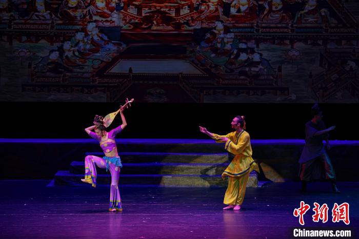 2023年4月17日晚,中國經(jīng)典舞劇《絲路花雨》在澳門百老匯劇場演出。(資料圖)甘肅演藝集團供圖