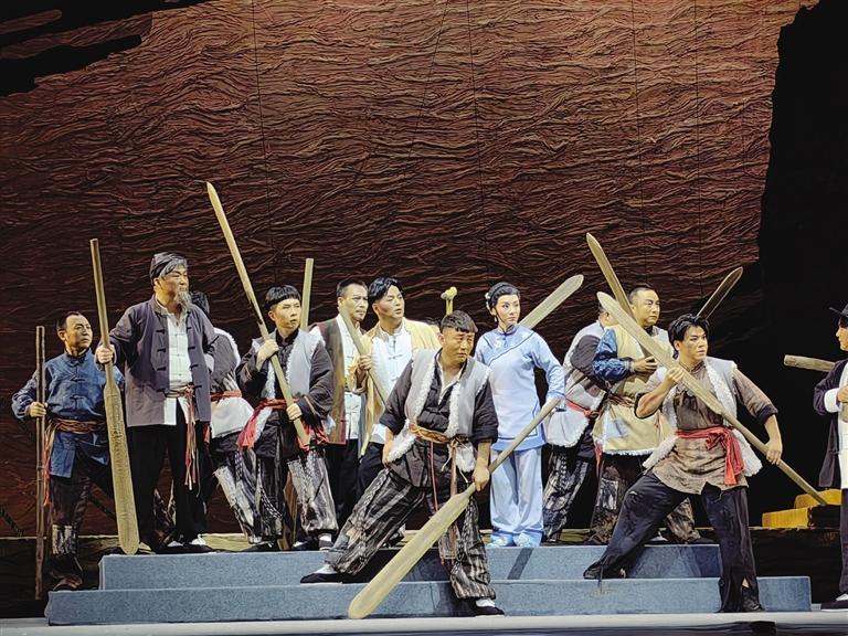 中國(guó)甘肅網(wǎng)5月21日訊 據(jù)蘭州晚報(bào)報(bào)道(記者 高宏梅 文/圖)酣暢淋漓的“花兒”唱出了黃河兒女的人間悲喜,韻味濃厚的“嘛簧”一唱眾幫,隴劇戲曲張力無限,“羊皮筏子賽軍艦”的熱血故事成就走心之作……5月19日晚,國(guó)家藝術(shù)基金資助項(xiàng)目原創(chuàng)隴劇《大河?xùn)|流》在黃河劇院成功首演,隴劇“梅花獎(jiǎng)”甘當(dāng)配角,“青春力量”首挑大梁,出新出彩的優(yōu)異表現(xiàn)贏得滿堂彩。