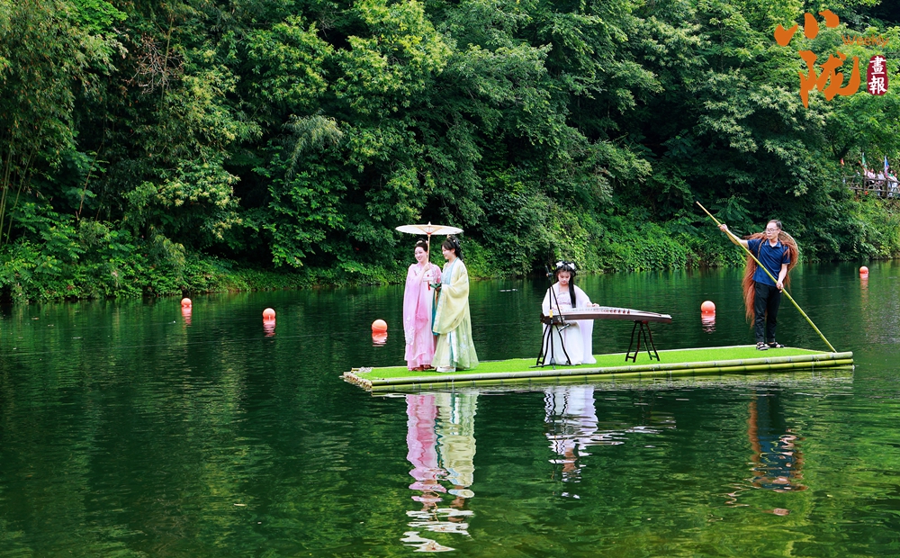 天鵝湖上一葉竹筏緩緩而來(lái),以竹筏為舞臺(tái),一系列精彩紛呈的水上文藝表演,演繹出天鵝湖的浪漫與靈動(dòng)。