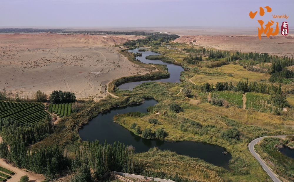 幾灣清水,挺拔修直的白楊樹,高大密集的蘆葦蕩,蔥蔥郁郁的灌木林綿延數公里,野麻灣已成為陽關濕地至水尾綠洲過渡帶一道獨特的風景線。